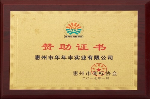 惠州商标协会赞助证书